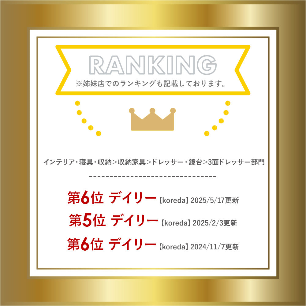サイズ | 商品サイズ/(約)幅26.5cm×奥行21cm×高さ32.5cm(持ち手含) 内寸サイズ/(約)幅25cm×奥行19cm×高さ23.5cm 鏡サイズ/(約)幅20.5cm×高さ15cm+幅10.5cm×高さ15cm×2枚 前板サイズ/(約)幅26.5cm×奥行14.5cm |